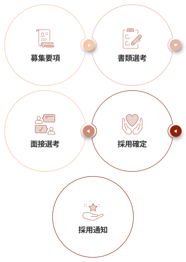 募集要項に沿って応募手続きを行い最終採用が確定した方には、個別に通知が送られます。 採用確定後、入社の日程や必要書類などは別途お知らせいたします。